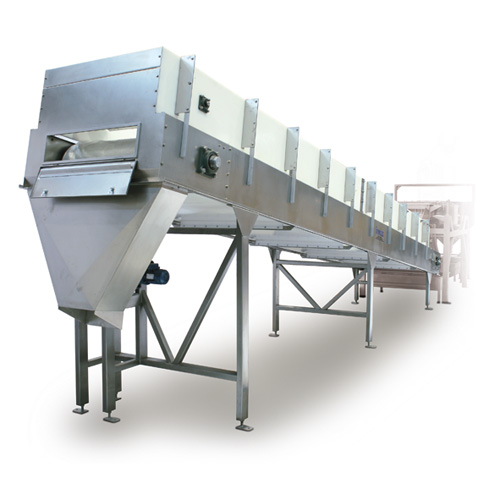 Our accumulation conveyors keep the product moving slowly to absorb down times on the line in later processes, letting the line run on without interruptions while keeping a steady flow of products into the next processes. It also allows controlling the product's time of residence on the conveyor
